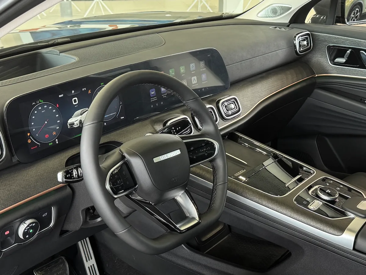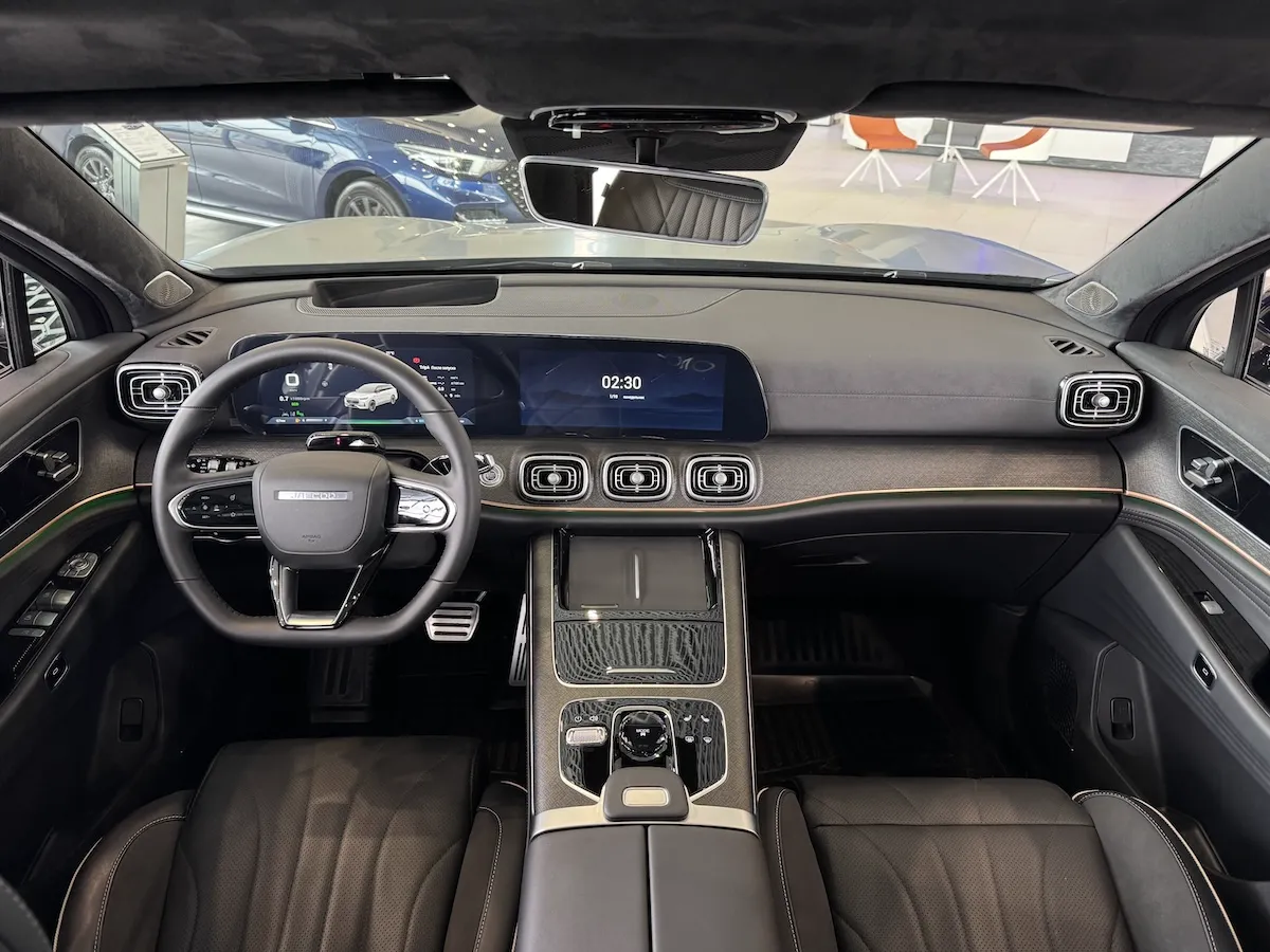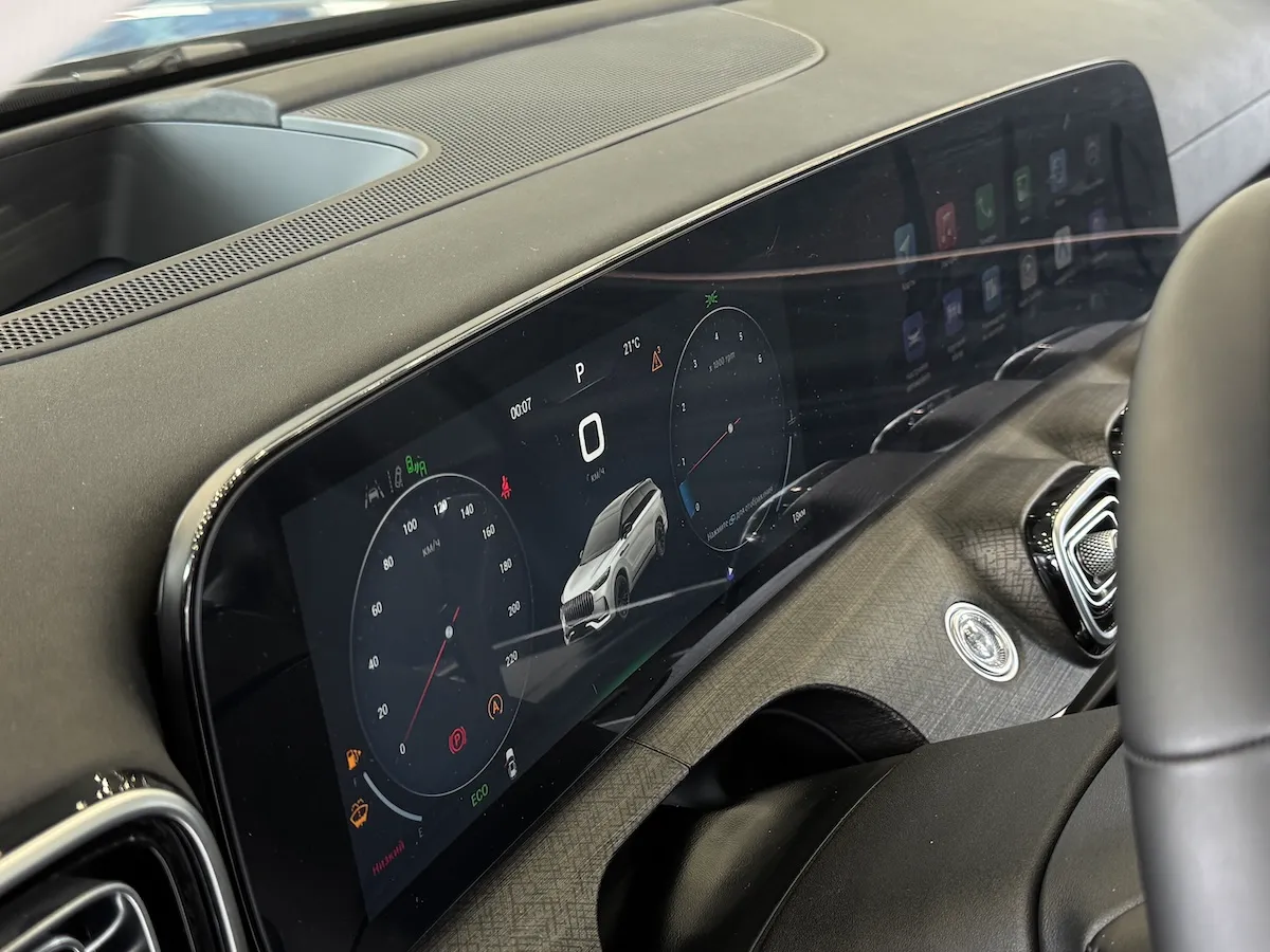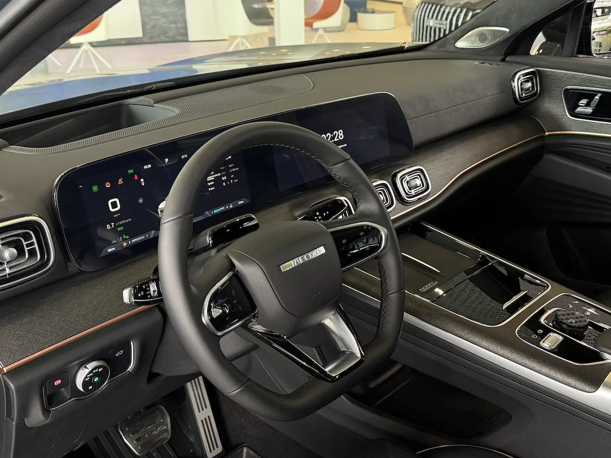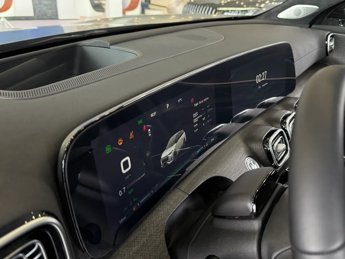 Суммарная диагональ приборной панели J8, объединенной с дисплеем мультимедиа, составляет 24,6 дюйма. Изогнутые боковые грани дисплея обеспечивают безупречную читаемость при любом освещении.