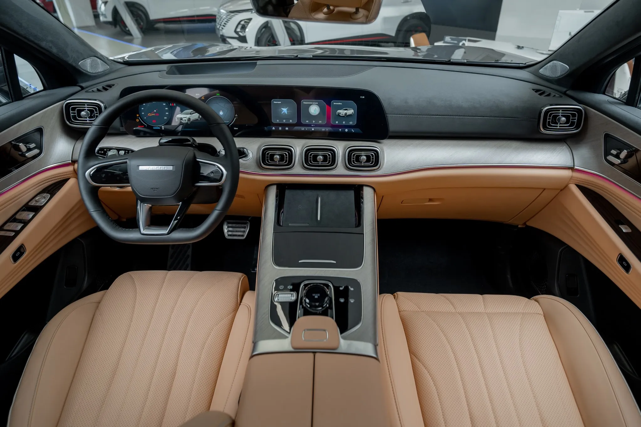 Новый J8 умеет и любит быть разным. Система фоновой подсветки салона предлагает 255 цветов на выбор – от динамичного красного до романтических оттенков фиолетового. Выбирайте цвет под настроение.